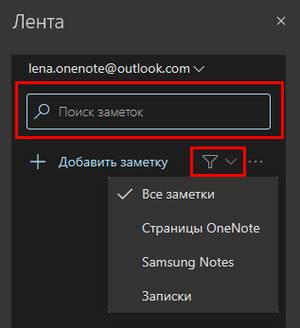 В «Ленте» есть возможность фильтровать заметки по каждому из этих типов и выполнять текстовый поиск.