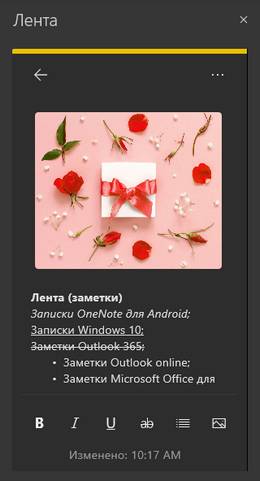 В «Ленте» отображаются не все последние изменённые страницы OneNote. Например, страницы, созданные с помощью приложений Web clipper и IFTTT, в «Ленту» не попадают, но показываются в списке «Последних заметок» в левой части программы.