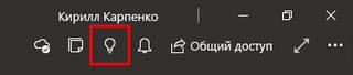 Инструмент «Помощник» вызывается нажатием лампочки в правом верхнем углу OneNote.