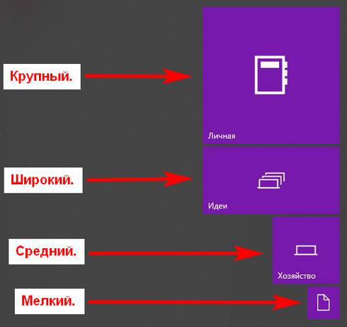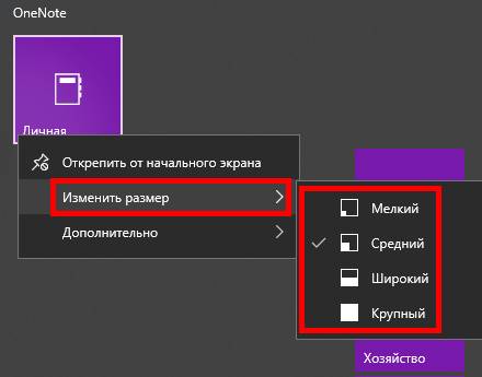 5. Можно изменить размер плиток. Кликните по плитке правой кнопкой мыши. Выберите «Изменить размер». Далее: мелкий, средний, широкий или крупный.