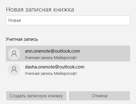 Введите название записной книжки, выберите учётную запись и нажмите «Создать записную книжку».