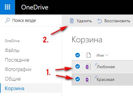 Разделы и страницы, которые мы удаляем, помещаются в корзину записной книжки на 60 дней. В течение этого срока их можно восстановить. Затем они безвозвратно удаляются.