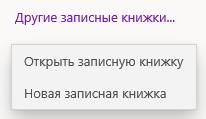 2. В контекстном меню выберите «Открыть записную книжку» (CTRL+O). Либо кликните ссылку «Другие записные книжки…». Она расположена под списком записных книжек.