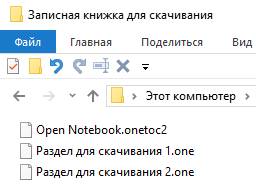 Распакуйте архив folder.zip. В нём будут папки с названиями, соответствующими названиям записных книжек. Внутри папки записной книжки файл «Open Notebook.onetoc2» и файлы с расширением «.one» и названиями, соответствующими названиям разделов. При открытии файлов с расширением «.one» страницы добавляются в раздел OneNote по умолчанию.