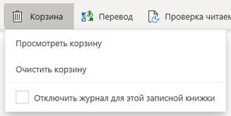 3. Отключить журнал для записной книжки. В этом случае журналы и разделы будут удаляться сразу, их нельзя будет восстановить из корзины в течение 60 дней. Пункты просмотра и очистки корзины станут неактивными.