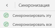 1. Значок "Состояние синхронизации страницы" в главном меню (в правом верхнем углу программы).
