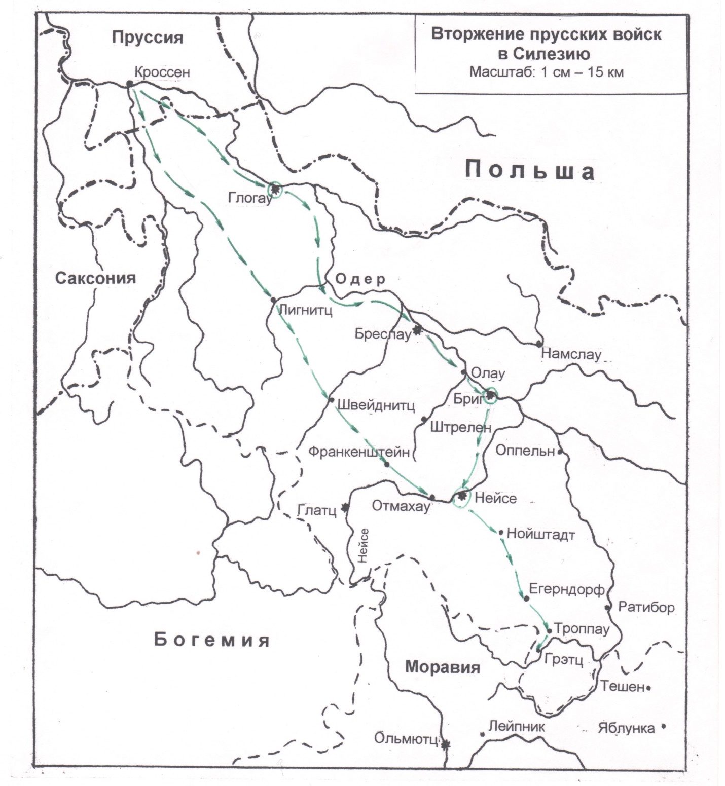 Указанные силы, собранные в Кроссене, должны были образовать первую волну армии вторжения. В их задачу входило: не теряя времени на осаду Глогау, – первой серьезной крепости на пути войск – быстро оккупировать всю провинцию и перекрыть горные перевалы, ведшие в Богемию, Моравию и Венгрию.