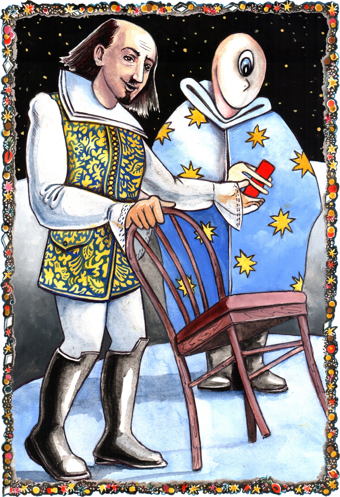 – Это облик известного на Земле писателя Шекспира, – пояснил Гвара-рио-ган, обернувшись из человека крамзанином, – Его превосходный управитель Крамзы считает, что с этим обликом я не напугаю Донесителей.