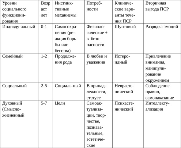 Таблица 2. Онтогенетические, регрессионные и инстинктивные механизмы формирования ПСР