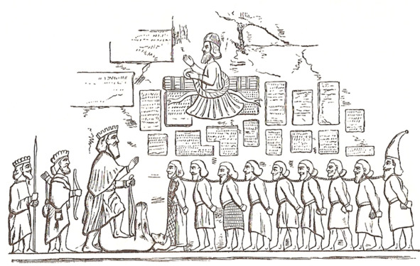 15 и сел в совещательной палате, и прочитано было пред ними писание. (Знать знакомится с писанием).