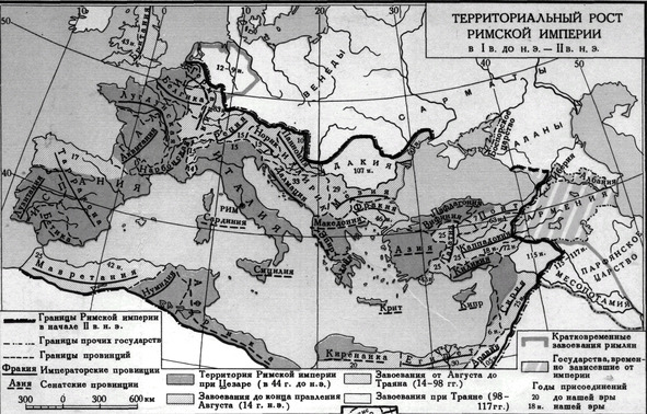 Территориальный рост Римской империи в I в. до н.э. – II в. н.э.
