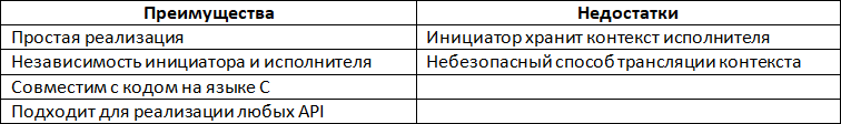 Табл. 1. Преимущества и недостатки обратных вызовов с указателем на функцию