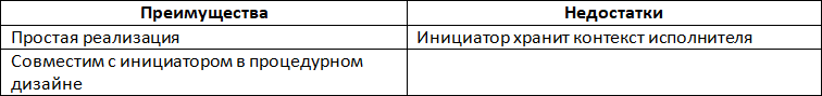 Инициатор хранит контекст исполнителя. Как мы видели, инициатор вынужден сохранять контекст исполнителя. Это усложняет реализацию и способствует увеличению расхода памяти.
