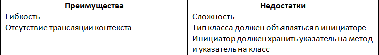 Табл. 4. Преимущества и недостатки реализации обратных вызовов с помощью указателя на метод-член класса