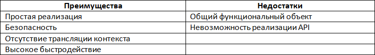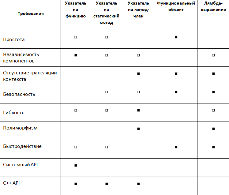 Табл. 5. Преимущества и недостатки обратных вызовов с помощью функционального объекта