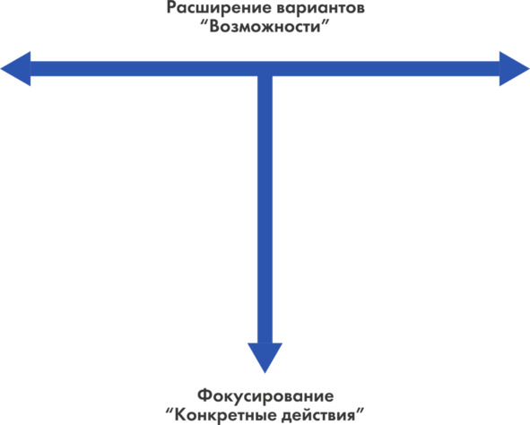 Сначала коуч задает расширяющие вопросы для поиска разных вариантов достижения цели: «Какие еще у вас есть варианты?», «Что еще?», «Давайте все-таки посмотрим, есть ли еще какие-нибудь варианты? Что бы вы хотели сделать независимо от последствий?» и т. д.