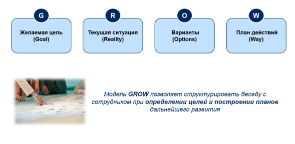 – Проверяющие стратегию: «Почему ты так думаешь?», «На каких предположениях основано твое решение?», «Почему ты думаешь, что это приведет к нужному результату?», а также повторение ключевой фразы сотрудника с вопросительной интонацией. Эти вопросы помогают понять, что стоит за первыми утверждениями сотрудника, они помогают выяснить его понимание стратегии достижения цели или ее отсутствие.