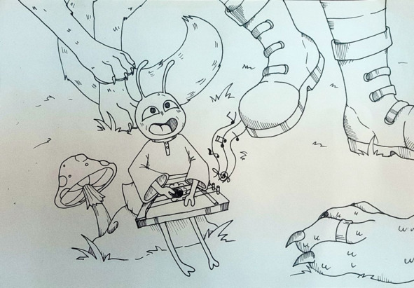Лучеза была послушной девочкой, но ещё совсем маленькой и от того любопытной. Летела она, как и положено, по прямой. Вдруг справа увидела деревню необычайной красоты. Голубые крыши белоснежных домов так сильно выделялись на фоне зелёного леса, что ей захотелось непременно туда заглянуть. И она свернула с дороги. Что тут началось! Девочку завертело, закружило! Она больно ударилась о верхушки деревьев и упала прямо в муравейник.