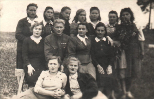 Коллектив работников райиздательства, июнь 1946 г. Второй слева в среднем ряду Д. П. Никитин