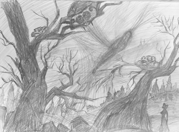 Увидала Танюшка, что весь лес окутан паутиной, и ветки пытаются эту паутину с себя сбросить. Но как только они прорывали эту паутину, сразу же вырастала новая и опять опутывала деревья с еще большей силой. И будто услышала Танюшка голос деревьев: «Помоги нам, Танюшка! Избавь нас от этого зла! И Роду своему тогда сможешь помочь!».