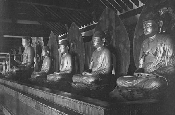 Статуи Амида Будды в Главном зале амидийского храма Дзёруридзи. XI в. Киото