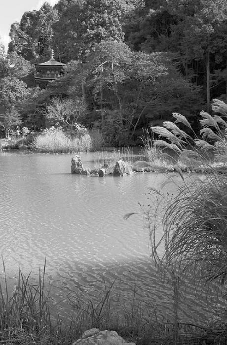 К числу перемен, осуществленных рукой дзэнского мастера с тем чтобы преобразить облик райского уголка, обогатить его легковесную ажурную прелесть глубиной нового смысла, следует отнести в первую очередь изменение очертаний Золотого пруда: ему была придана форма, повторяющая силуэт иероглифа «сердце» (кокоро). Символика этого иероглифа очень значима для буддийского монаха, ибо кокоро – это не просто «сердце». В контексте понятий буддизма дзэн – это прежде всего «озарённое», «просветлённое» сердце, та сокровенная суть человека, то истинное «я», которое ему предстоит познать посредством медитации.