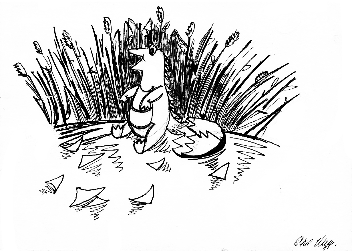 И тут необычное яйцо тоже определило, что его время пришло. Оно треснуло, и в щель скорлупки просунул узкую головку маленький любопытный крокодильчик.