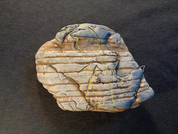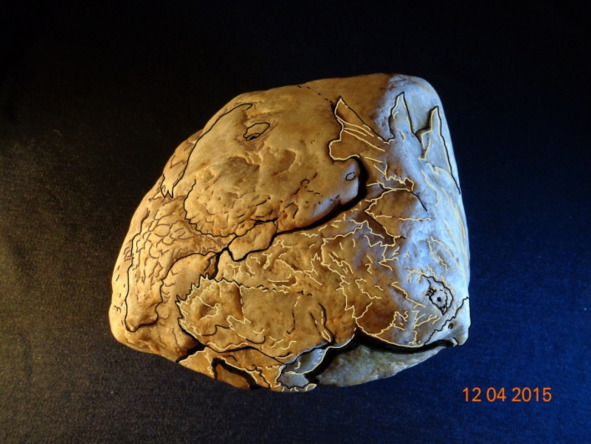 А теперь, я хочу выбить последний аргумент из рук скептиков и оппонентов, которые утверждают, что на камнях, как и в облаках можно увидеть всё что угодно. Мы изучили и этот аспект работы нашего головного мозга. Справедливости ради скажу, что мы действительно ответственно провели эксперимент и попытались найти рисунки в старой штукатурке, в пятне краски на полу, в сучке деревянной доски, в ворохе опавших листьев и, действительно, везде их находили! Но, именно этот, принцип работы мозга по поиску взаимосвязей разных линий и использован в основе искусства камнеписи, и наши предки прекрасно понимали эту его особенность. Объясню это на примере. Представьте, что вы вошли в комнату, где все вещи разбросаны и перевёрнуты, и вам надо выяснить, что здесь произошло. Вы видите перед собой рассыпанные макароны, лужу разлитого супа, разбросанные спички и листок бумаги с какими-то каракулями. Вопрос: с какого предмета вы начнёте изучать, что здесь произошло? Ответ очевиден: с листка бумаги, ведь там что-то написано. И даже если Вы не сможете сразу понять, что означают линии на нём, вы всё равно постараетесь расшифровать это послание. Но ни кому из нас при этом, не придёт в голову искать взаимосвязь, изображения и буквы в рассыпанных макаронах и спичках или пытаться разглядеть лицо хозяина этой комнаты в луже супа – почему? Потому что, в отличие от бумаги, это не легитимные носители информации, и люди так не передают друг другу послания! До бумаги легитимными носителями информации были папирус и выделанные шкуры, до них были глиняные таблички, а ещё раньше камень.