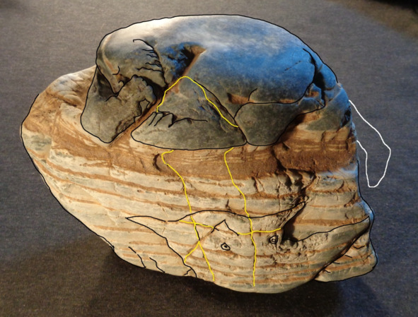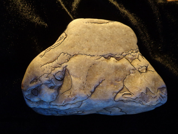 А теперь рассмотрим, так ли уж отличается глиняный носитель информации от каменного. Что бы что-то написать на глине, люди сначала предавали ей искусственную форму. Так они сразу понимали, что перед ними носитель, а не природный кусок породы. Заглаженная ровная поверхность давала возможность мозгу не путаться в природных линиях, а сразу обнаружить взаимосвязь в оставленных чёрточках другим человеком. Так происходит чтение. Все мы знаем этот эффект, когда при чтении текста, буквы исчезают, и мы видим образы, описанные автором. Так вот, камни, украшенные камнеписью, тоже имеют искусственные геометрические формы. Они заглажены, но просто их чёрточки не несут схематичный символ, а сразу создают изображение. А что бы ни спутать линии оставленные художником от сколов, полученных позднее при работе, камень ещё и отшлифовывали, так как это можно было сделать, только пока каменная масса не застыла окончательно.