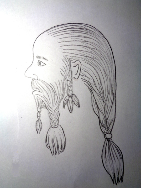 Еще одно изображение спящего на птице человека и мы реконструировали причёску человека того периода.