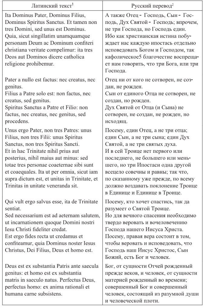 1 Exemplar Athanasiani Symboly // Patrologia Latina. 88. Col. 585–586; Enchiridion symbolorum et definitionum quae in rebus fidei et morum a conciliis oecumenicis et summis pontificibus emanarunt in auditorium usum / ed. Dr. Henricus Denzinger. – Wirceburgi, 1854. P. 37–39.