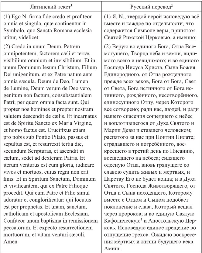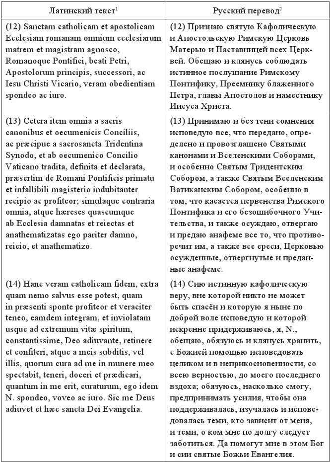 2 http://unavoce.ru/library/tridentinae.html#rus. Также см.: Христианское вероучение. Догматические тексты учительства Церкви III–XX вв. – СПб.: Издательство св. Петра, 2002. С. 32–34.