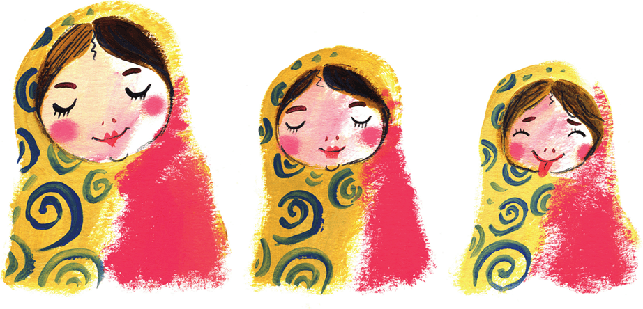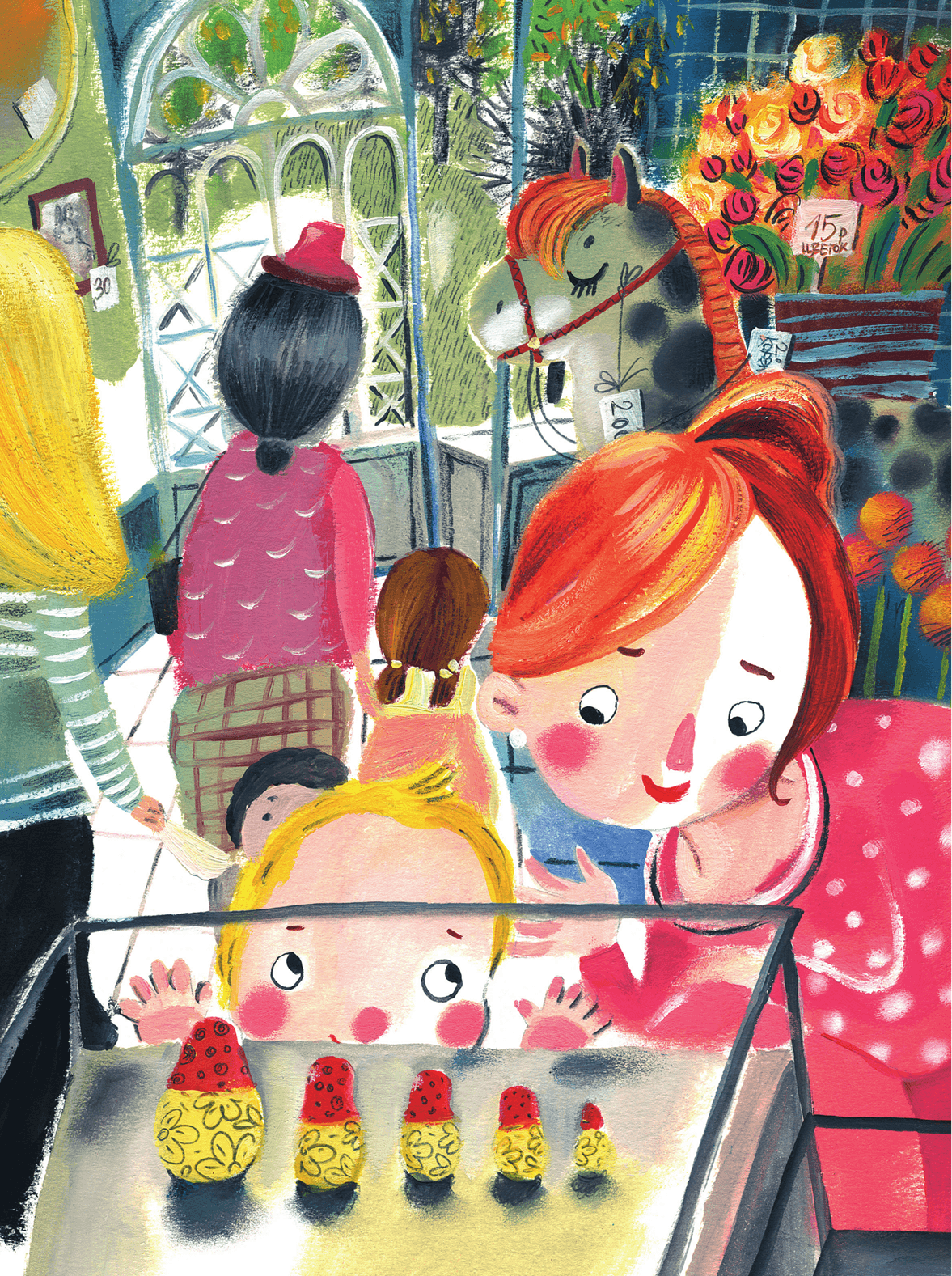 Однажды в магазине Никита увидел необычных кукол – красивых, ярко одетых девочек. Они стояли рядышком в стеклянной витрине. Румяные, в ярких сарафанах в цветочек… И все на одно лицо!