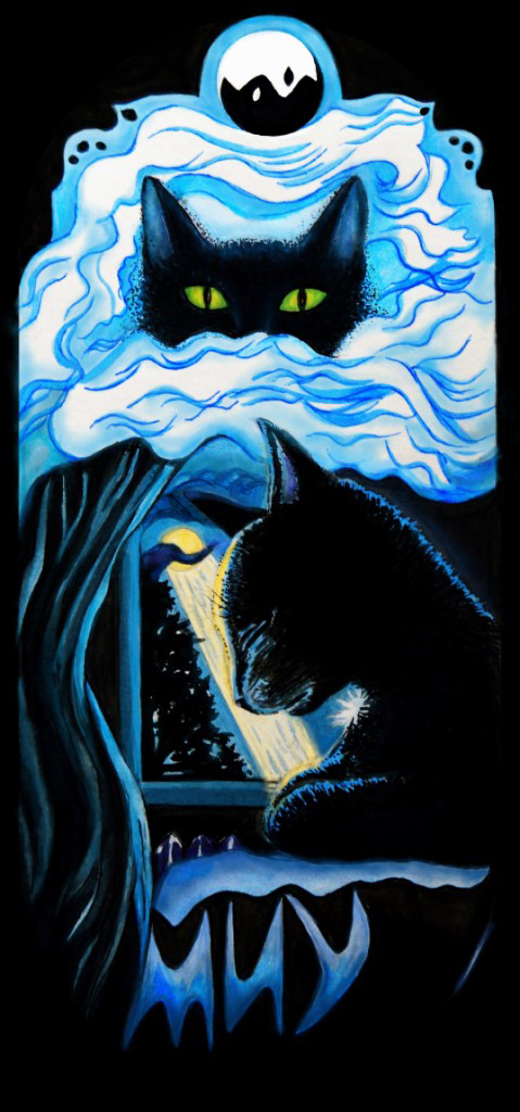 «Мау… Настя… малышка моя, приди…» Тонкий туман, в котором видны неясные очертания чёрного, медленно двигающегося силуэта… Белёсую пелену вдруг прорывает блеск двух жёлто-зелёных огоньков. Они растут, надвигаются. Это светящиеся глаза чёрной кошки… «Китти, мама Китти, – узнаёт Настя. – Моя мама…» Настя нервно подёргивает усами во сне. «Настя… Доченька…Приди».