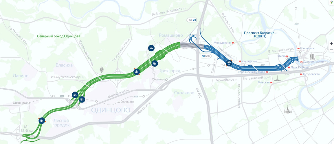 В 2023 году в Москве построили новую вылетную магистраль – Северный дублер Кутузовского проспекта (СДКП). Он стал продолжением платной трассы – северного обхода Одинцово.49