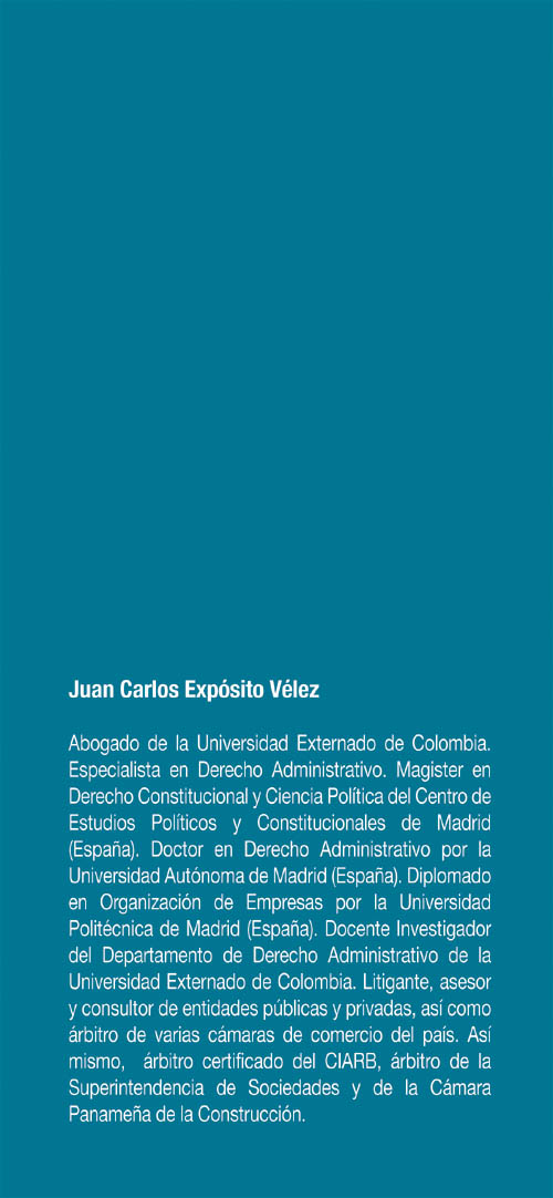 Finalmente, mis sentimientos de gratitud se extienden al Departamento de Derecho Administrativo de la Universidad Externado de Colombia por seguir manteniendo encendida la llama de la investigación académica.