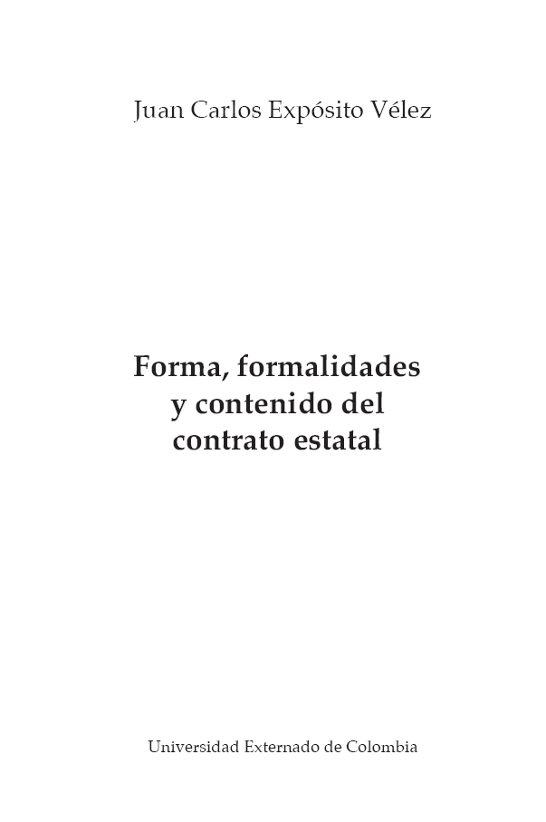 Forma, formalidades y contenido del contrato estatal / Juan Carlos Expósito Vélez. -- Bogotá : Universidad Externado de Colombia. 2021.