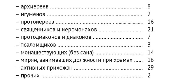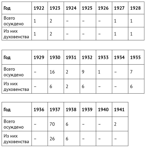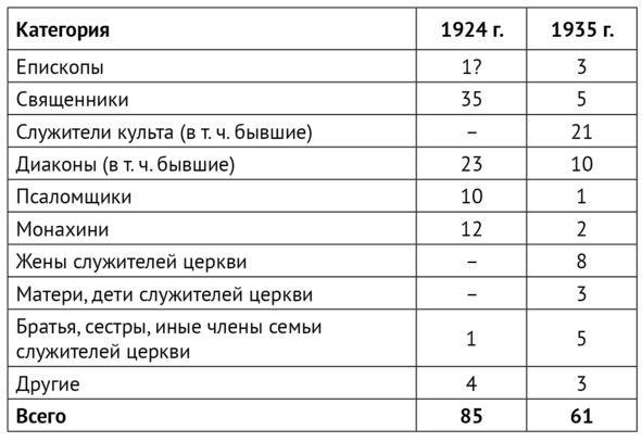 Итого 118 «церковников», в том числе 57 представителей духовенства, включая заштатное (из них расстреляно 49 и 27 соответственно)240.