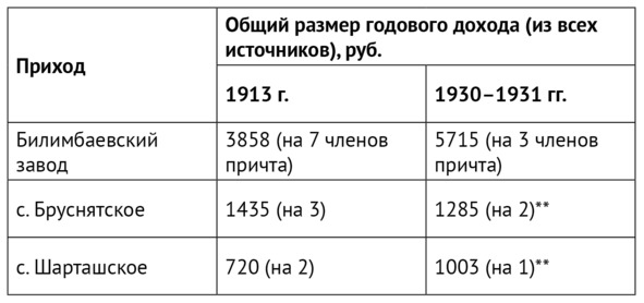 Таблица 2.5 Сравнительная таблица доходов духовенства за 1913 и 1930—1931 гг.*