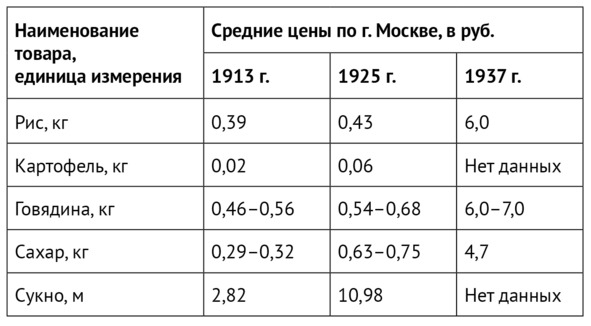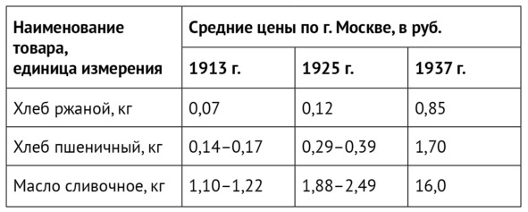 * Источник: Терешкова М. Цены 1913 года в современных рублях [Электронный ресурс] // Красное место. URL: http://www.krasplace.ru/ceny-1913-goda-v-sovremennyx-rublyax (дата обращения: 05.11.2018); Курукин И., Никулина Е. Повседневная жизнь русского кабака от Ивана Грозного до Бориса Ельцина. М.: Молодая гвардия, 2007; Справочник отпускных и розничных цен по г. Москве (1937 г., август).