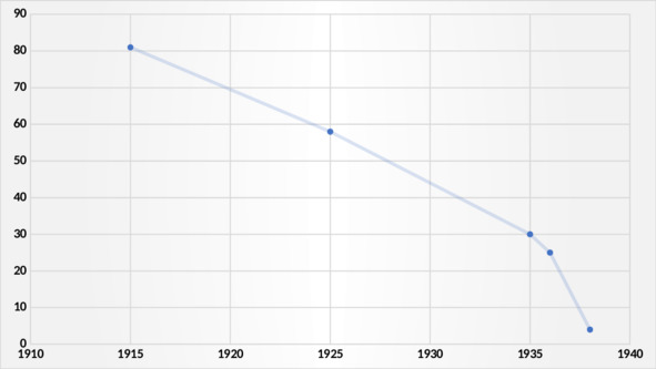 Рис. 1 – Изменение численности священнослужителей г. Свердловска