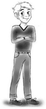 Parlak mavi gözlü saman sarısı saçlı genç bir delikanlıydı. Mavi kot pantolon ve kazak giyiyordu ve üzerinde “Umurumda değil” havası vardı.