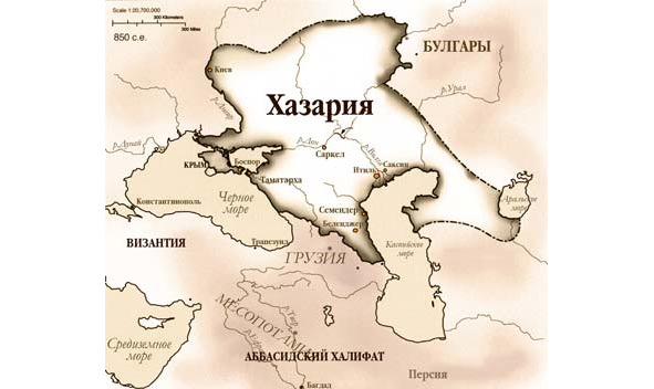 После распада Тюркютского Каганата, предположительно, уцелевшие потомки сарских скифов, – кочевые хазарские племена – вышли из глубин Азии в южные российские степи. Там они образовали свое государство со столицей Семендр в Дагестане. В дальнейшем, после успешных боевых действий против славян и булгар, хазары перенести столицу в устье Волги и нарекли ее Итиль.