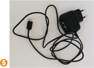 7. Cuando todo esté conectado correctamente, usaremos un cargador con conector micro-USB 5 para alimentar nuestra Raspberry Pi (hasta el modelo 3). Se trata del mismo utilizado por los teléfonos móviles (excepto iPhones).