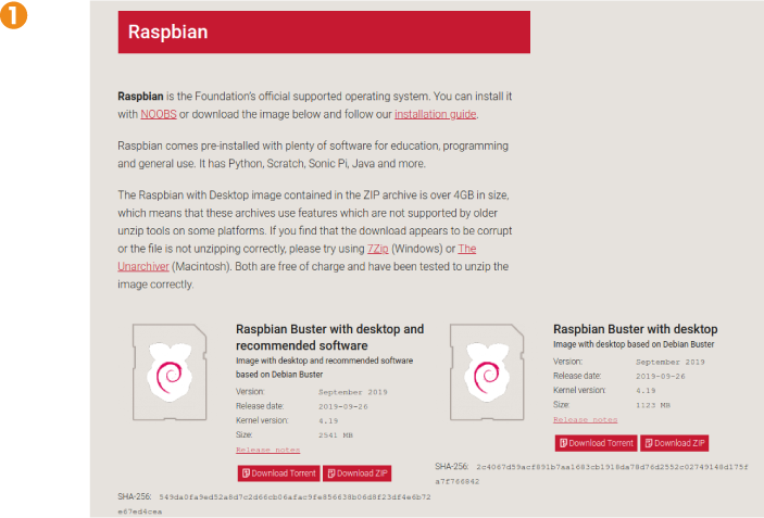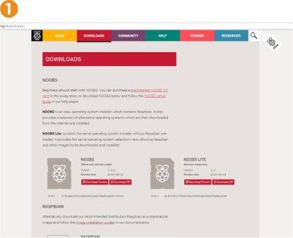 1. Descargaremos el archivo NOOBS de https://www.raspberrypi.org/downloads/, ya sea mediante el enlace directo al archivo zip, o usando la tecnología P2P con torrent 1.