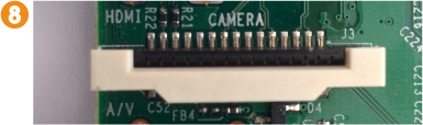 6. En la parte superior de la placa encontraremos la conexión para la RasPiCam 8, la cámara de vídeo oficial de Raspberry Pi, y un monitor con conexión DSI 9.