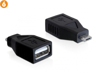 5. Otra de las características especiales que encontraremos en la Raspberry Pi Zero es que, debido a su pequeño tamaño, no dispondrá de un puerto de conexión USB estándar, sino de un puerto micro-USB (como el usado en los cargadores de teléfonos), por lo que tendremos que utilizar un adaptador USB-OTG 6 para conectar nuestros dispositivos USB a la Raspberry Pi Zero.