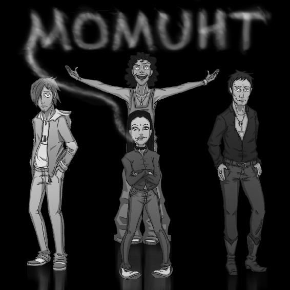 The two in the front stared at the camera with diametrically opposed expressions: the first, with an extremely 'Emo' hairstyle, had a thoughtful look that seemed to communicate what his whole life was a continuous torture; the other displayed a grin which seemed to tease you because he had achieved success and all you could do was envy him. The latter, especially, stood out for his dress code. A half unbuttoned dark shirt showed a jumble of ornaments around his neck. Finally there was the girl, smooth black hair, deep shiny eyes as dark as the night. She stood in the centre of the page with her arms crossed. Her eyes observed you from head to toe, as though you were a nullity and she dangled a cigarette from her mouth. The smoke, clearly added with a miserable editing intervention, rose up to form the band name. “Momuht” Fade read.