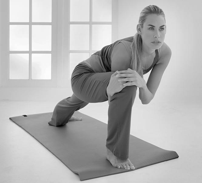 Упражнение 5. Исходное положение: лежа на спине, правая нога прямая, левая согнута в колене. Обеими руками потяните левую ногу к груди – задержите это положение на несколько секунд. Затем выпрямите и поднимите ногу вверх, также задержите на пару секунд, вернитесь в исходное положение. То же самое проделайте с другой ногой. На первых занятиях выполняйте упражнение 2–3 раза с каждой ноги, со временем доводя количество повторов до 10.