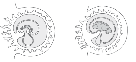 Вскоре вокруг делящихся клеток возникает своеобразный «мешок» – околоплодный пузырь (амниотическая оболочка), который постепенно заполняется жидкостью. Его предназначение – защищать растущий эмбрион от ударов. Кроме того, начинает образовываться плацента, которая соединяется с развивающимся эмбрионом пуповиной. Через пуповину из крови матери младенцу доставляются питательные вещества, вода, минеральные соли и кислород, а отработанные продукты также направляются обратно в плаценту и выводятся из организма матери.